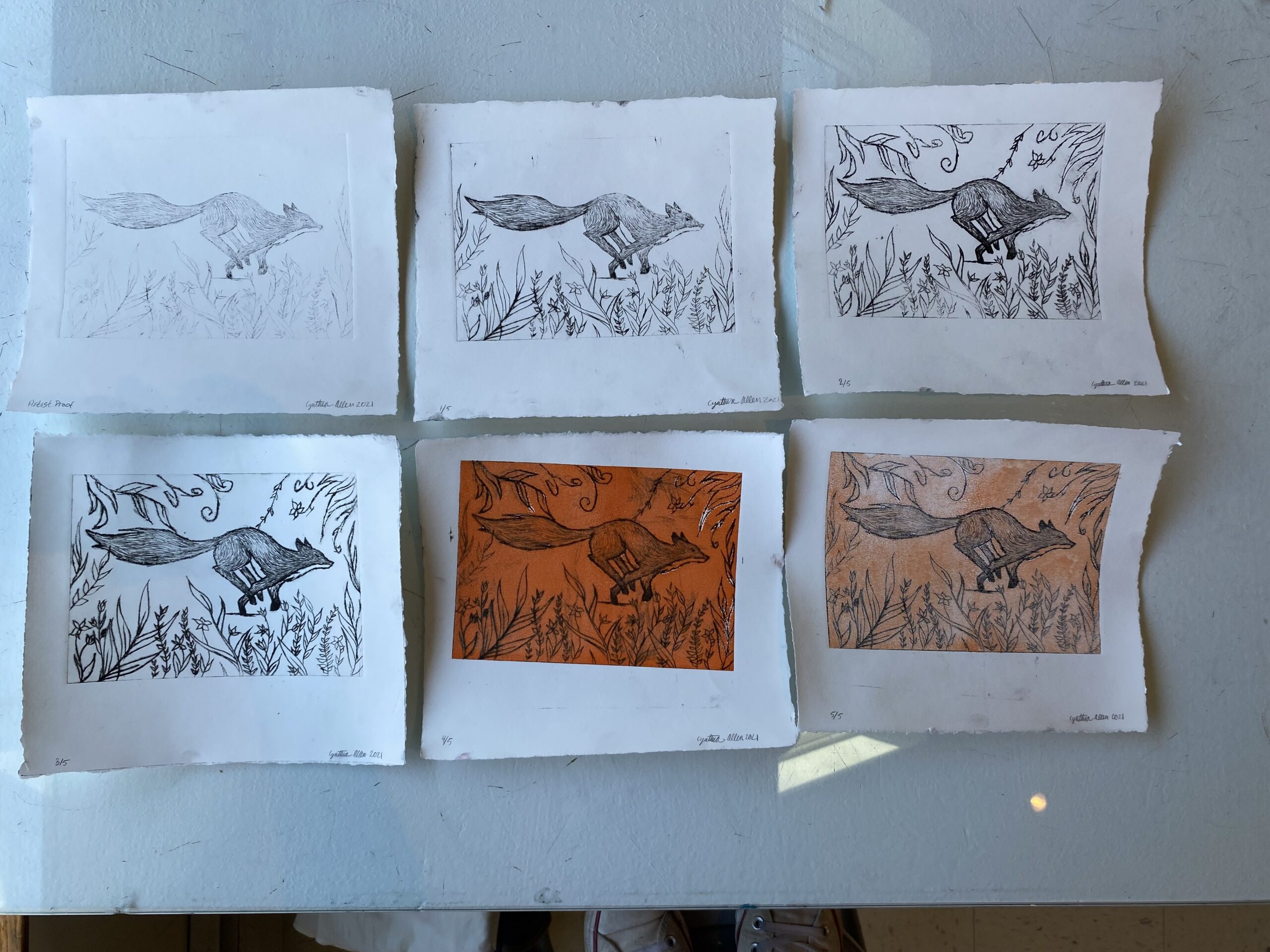 Etchings were the third type of printing we did. These etchings, typically done on metal, were carved on plastic. Etchings are a type of printmaking that allows the artist to get more details in their work. I would like to try etching with metal instead of plastic. I found the plastic difficult to manipulate and I wonder if it would be easier to get smoother lines on metal.