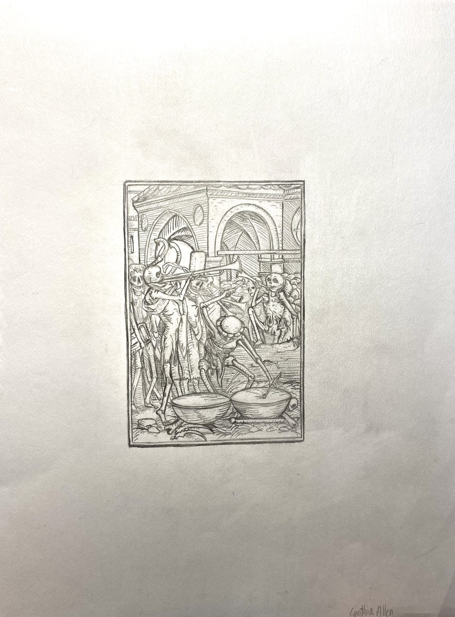 Copy the Xerox image provided in Brightspace from Hans Holbein’s Dance of Death on a 14” x